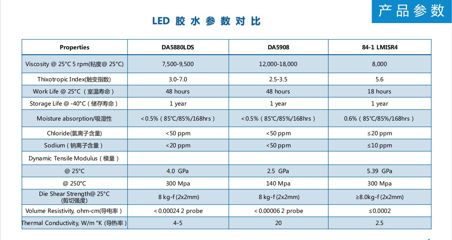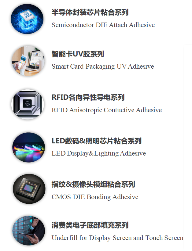 产品介绍:EPM LED用导电芯片粘合剂及绝缘芯片粘合剂,以易加工、易操作、高UPH高稳定性等产品优势,在LED领域还开发出适用于各类光源的绝缘胶以及高导电、高导热导电胶系列。